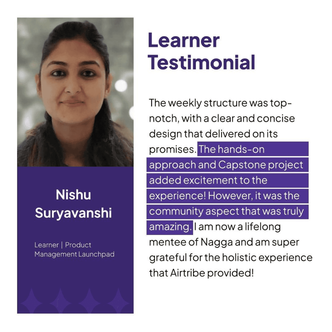 Airtribe excels in curating exclusive, expert-led courses that combine depth of knowledge with engaging, community-driven activities. Our emphasis on mentorship and peer-to-peer learning sets us apart